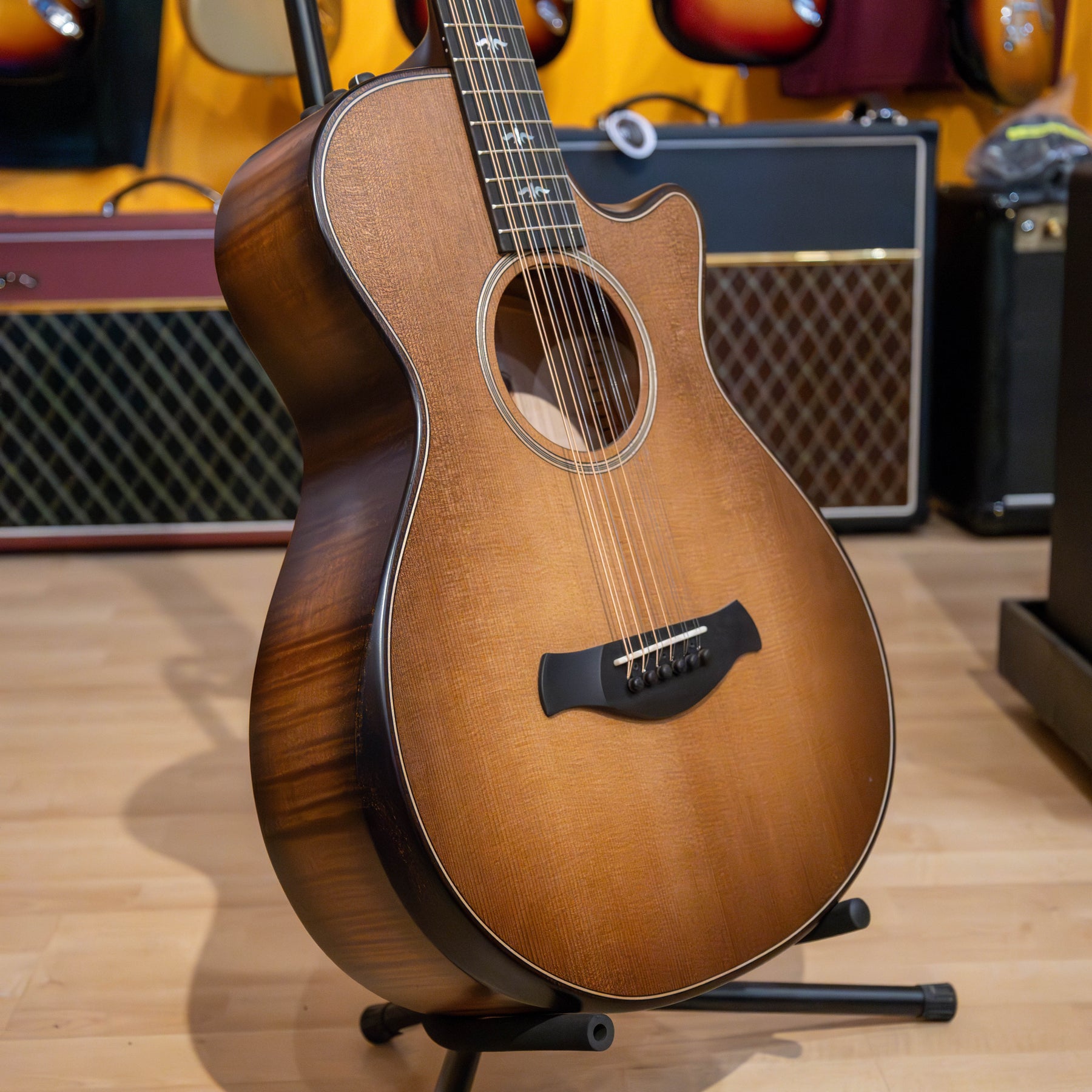 Joining the growing family of master-crafted Builder's Edition guitars, this 652ce is a 12-string for a new generation of acoustic guitarist. Built with figured Big Leaf maple for the back and sides with a torrefied Sitka spruce top, this model's shimmering, octave-rich tone benefits from maple's clarity and focus, offering an expressive, easily-recorded sound that will inspire players to expand their sonic palette. V-Class bracing delivers a unique boost in the 12-string configuration, adding texture and tonal bloom as notes resonate with increased sustain and power, while the guitar takes on additional punch resulting from the reversed string orientation. Placing the fundamental string at the top of each pair adds warmth and body, and a new double-mounted string anchoring system provides cleaner intonation with each string crossing the saddle at the same point. Taylor's special roasting process draws a more aged-in, sweetened response from the torrefied spruce top, and the 12-fret setup brings the bridge closer to the center of the lower bout for stronger midrange presence and a slinkier, more relaxed feel for your fretting hand.