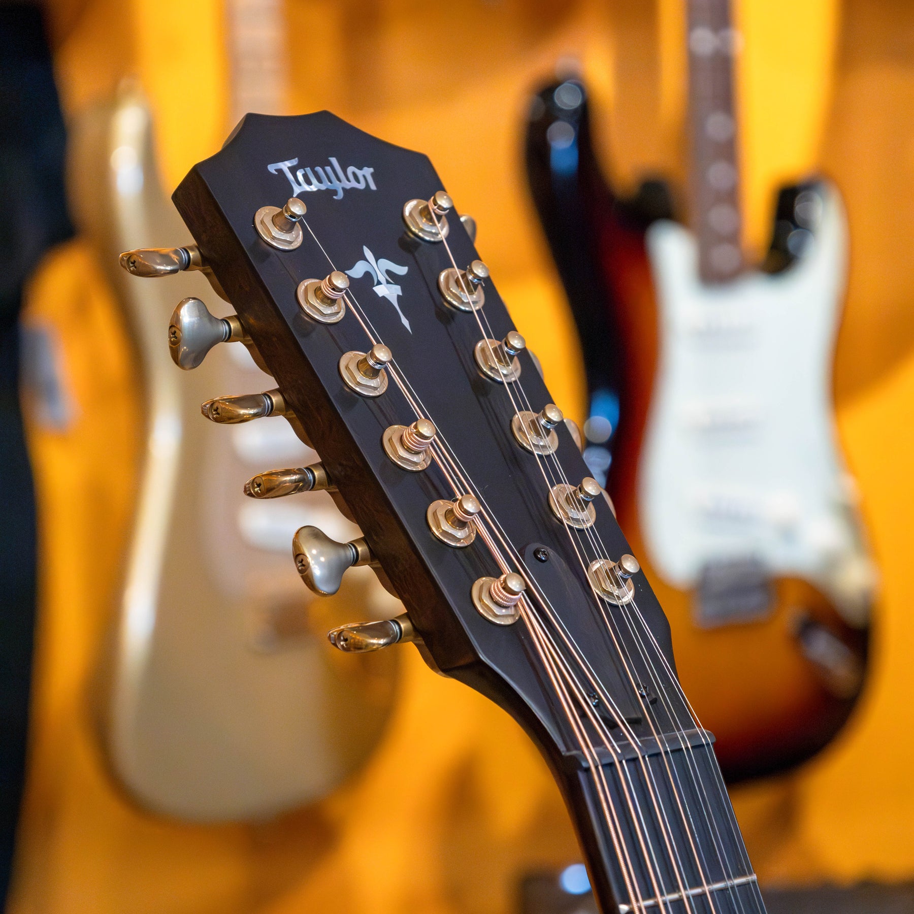 Back and sides of solid Big Leaf maple voiced with personal touches from Andy Powers set the 12-string Builder's Edition 652ce WHB apart from the rest of the Taylor line. Coupled with a torrefied spruce top, maple produces a vibrant sound with a transparent quality that emphasizes the unique style of each player, while the special roasting process for the soundboard adds a touch of aged-in sweetness. V-Class bracing draws out more volume and sustain while making for a cleaner harmony between notes all the way down the neck, and the reverse-strung setup (with the heavier string on top of each pair) delivers more midrange heft and warmth. The comfortable Grand Concert body is appointed with an armrest, rolled edges, a beveled cutaway and our Silent Satin finish.