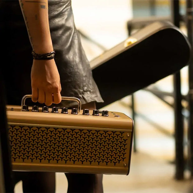 The Yamaha THR30IIA Wireless amplifier is designed specifically for acoustic guitarists. Realistic microphone modeling and onboard effects offer inspiring tones—as though your guitar’s sound was captured in a professional studio—and the compact size and classic style fit naturally into any environment. With Bluetooth support, a rechargeable battery, and a built-in Line 6® Relay® wireless receiver, you don’t have to worry about wires. Just focus on the music, wherever you want to play.