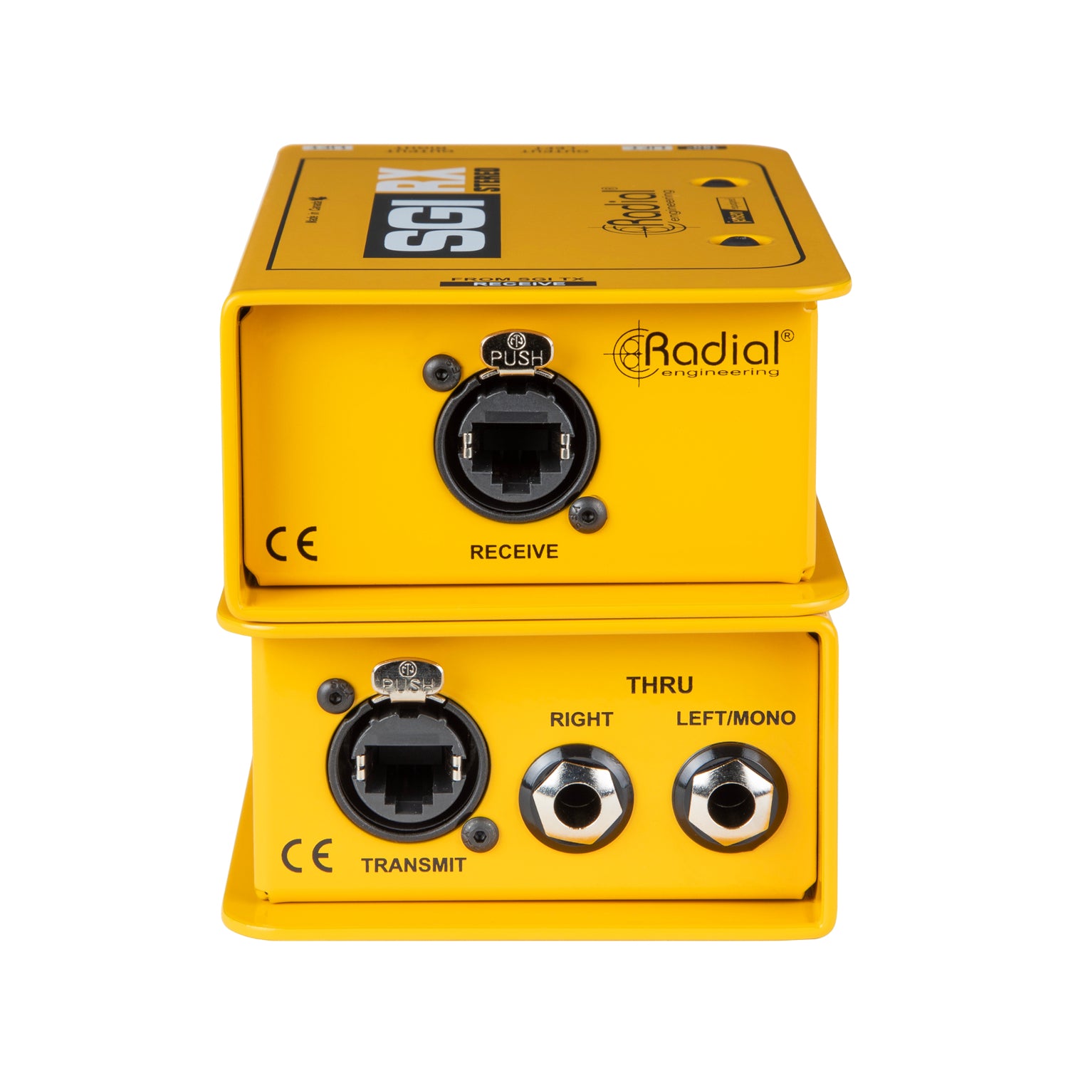 SGI Stereo is a stereo instrument interface designed to send unbalanced instrument signals over long distances without loss. It performs the same core function as the standard SGI, but adds stereo inputs and outputs and transmits the audio as an analog signal over a single Ethernet cable between the two units. Built with Jensen transformers for superior sound quality, SGI Stereo is ideal for stereo rigs, pedalboards, and remote amp setups where preserving tone and dynamics over distance is critical.