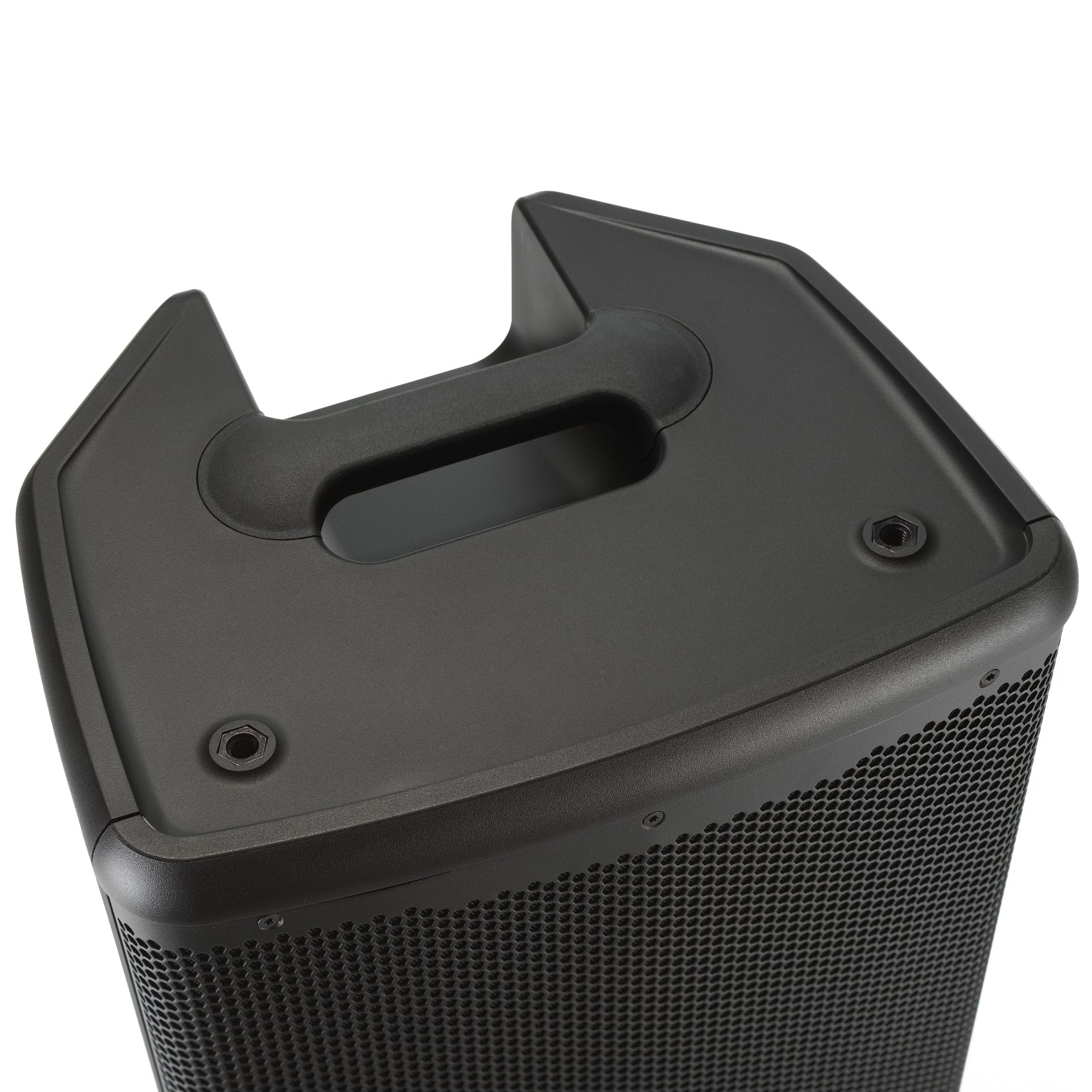 EON712 loudspeakers can be used as main PA speakers or floor monitors. Top and rear suspension points enable flying speakers; rear suspension points serve as connections for fixed installations, using an optional universal yoke mount. Indexed feet molded into enclosures enable a range of acoustic configurations and secure stacking for traditional stand-up configurations and convenient storage and transport. (Companion EON718S subwoofers feature a threaded pole mount for full-range speakers and are easily stacked for cardioid configurations.)