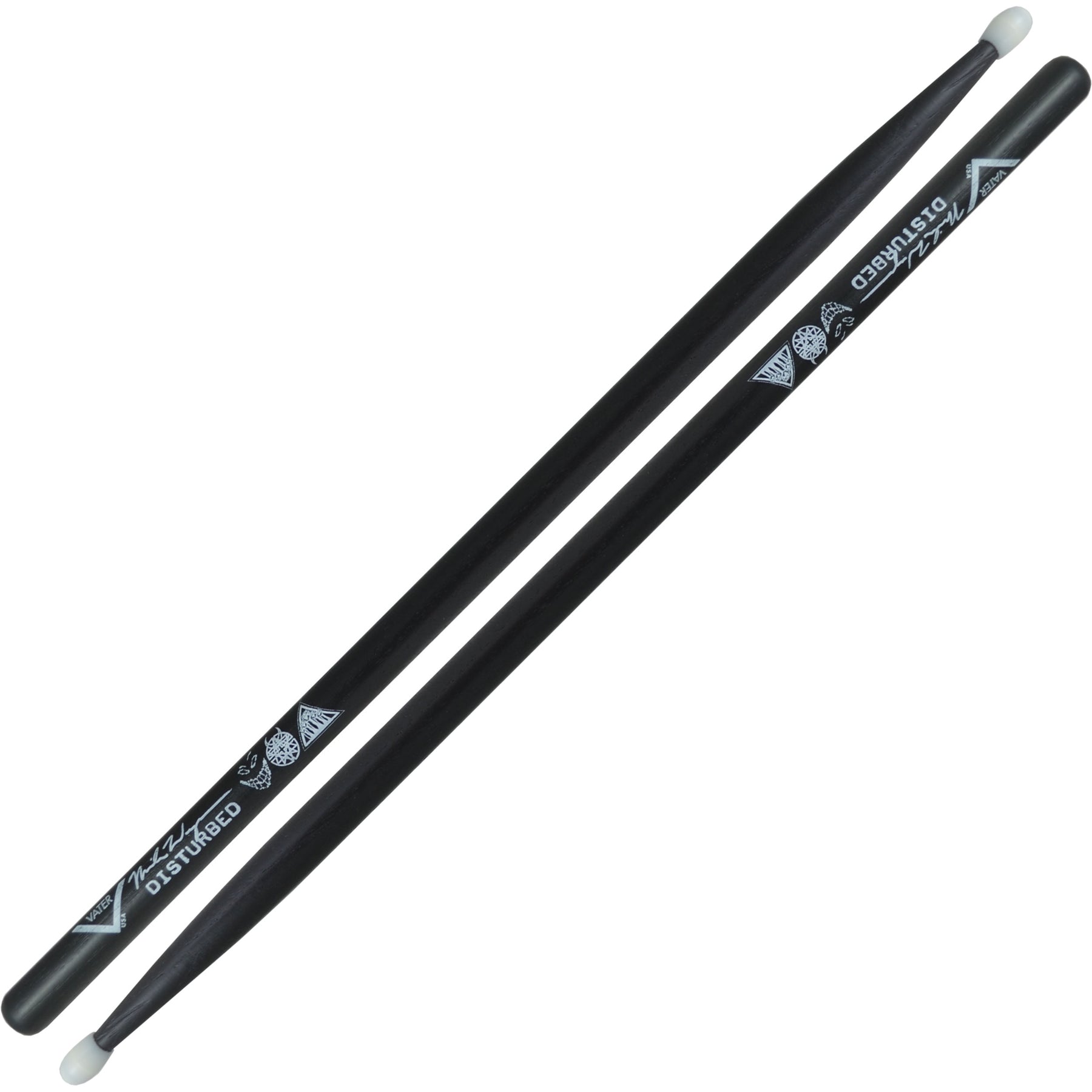 Mike Wengren's (Disturbed) signature sticks, the VHMWNs, have a grip size that sits between a 5B and 2B with a quick taper to the oval nylon tip. The 17" length gives the sticks more weight for a harder hit and full reach around your kit. The VHMWNs feature a black stain finish with Disturbed logo artwork.