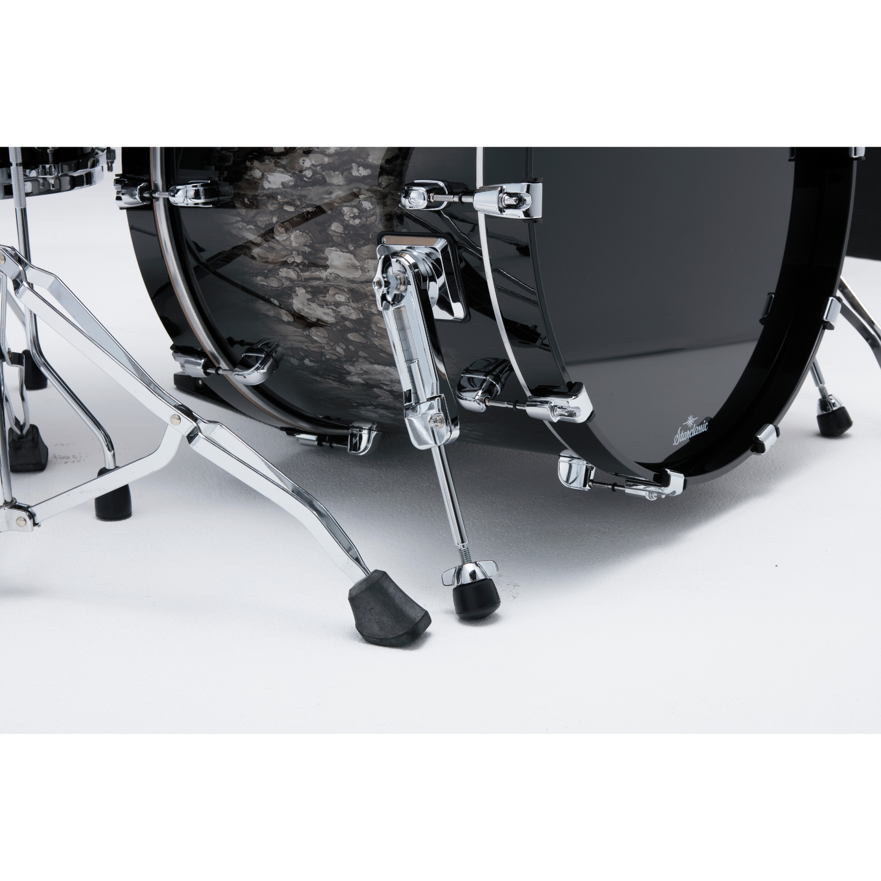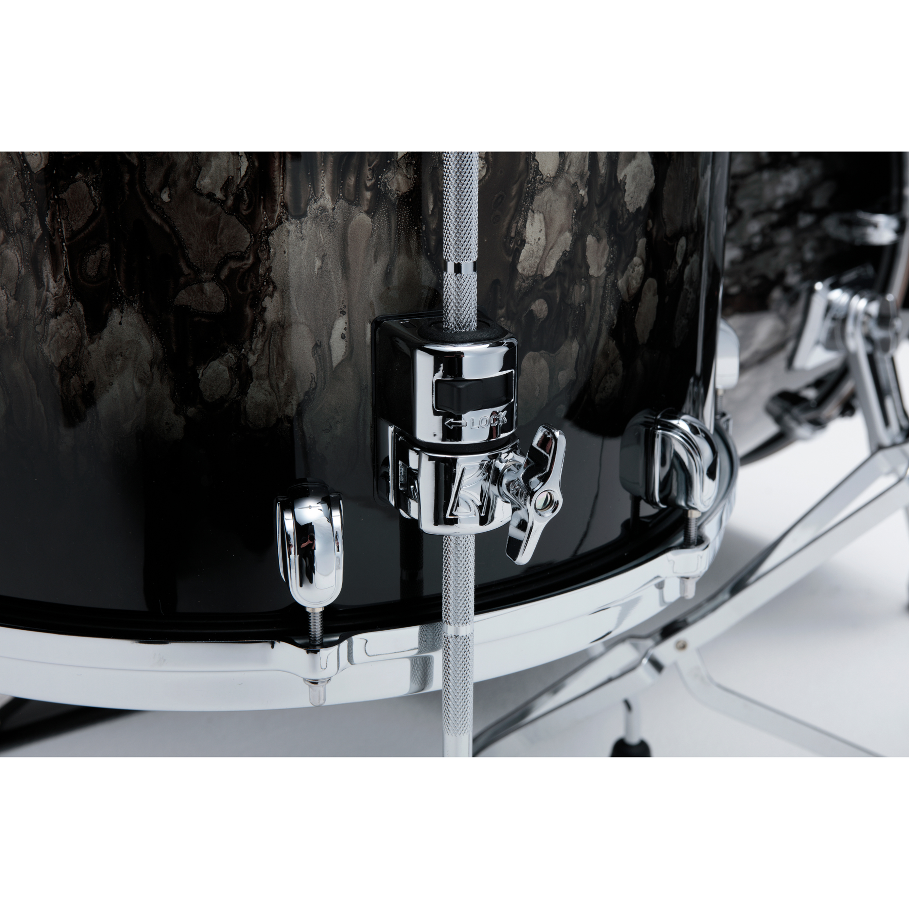 Exploring limitless possibilities, Tama's result in the wake of countless experimentation came in the form of the hybrid shell: Walnut/Birch. This shell combination brings the superior quality warmth and mid-to-low frequency tone of the increasingly popular and truly unique Walnut, with the well-defined and uncompromisingly solid attack of Birch. This 5-piece shell pack configuration consists of a powerful 22"x16" bass drum with mounted double tom holder quick/efficient set-up and tear-down. Tama successfully applied their trademark engineering with high-tech and efficient drum craftmanship to create a distinctive sounding and highly flexible drum set.