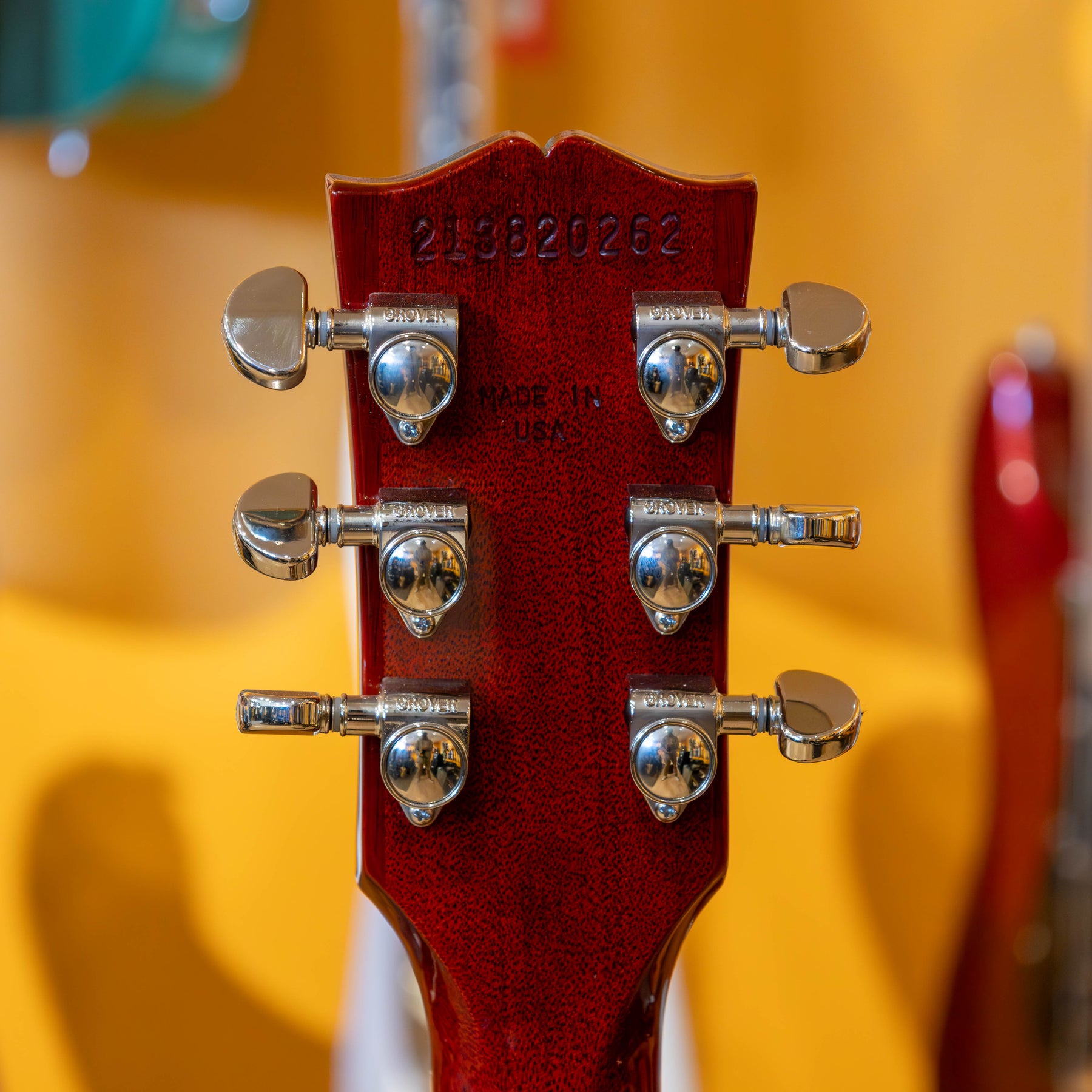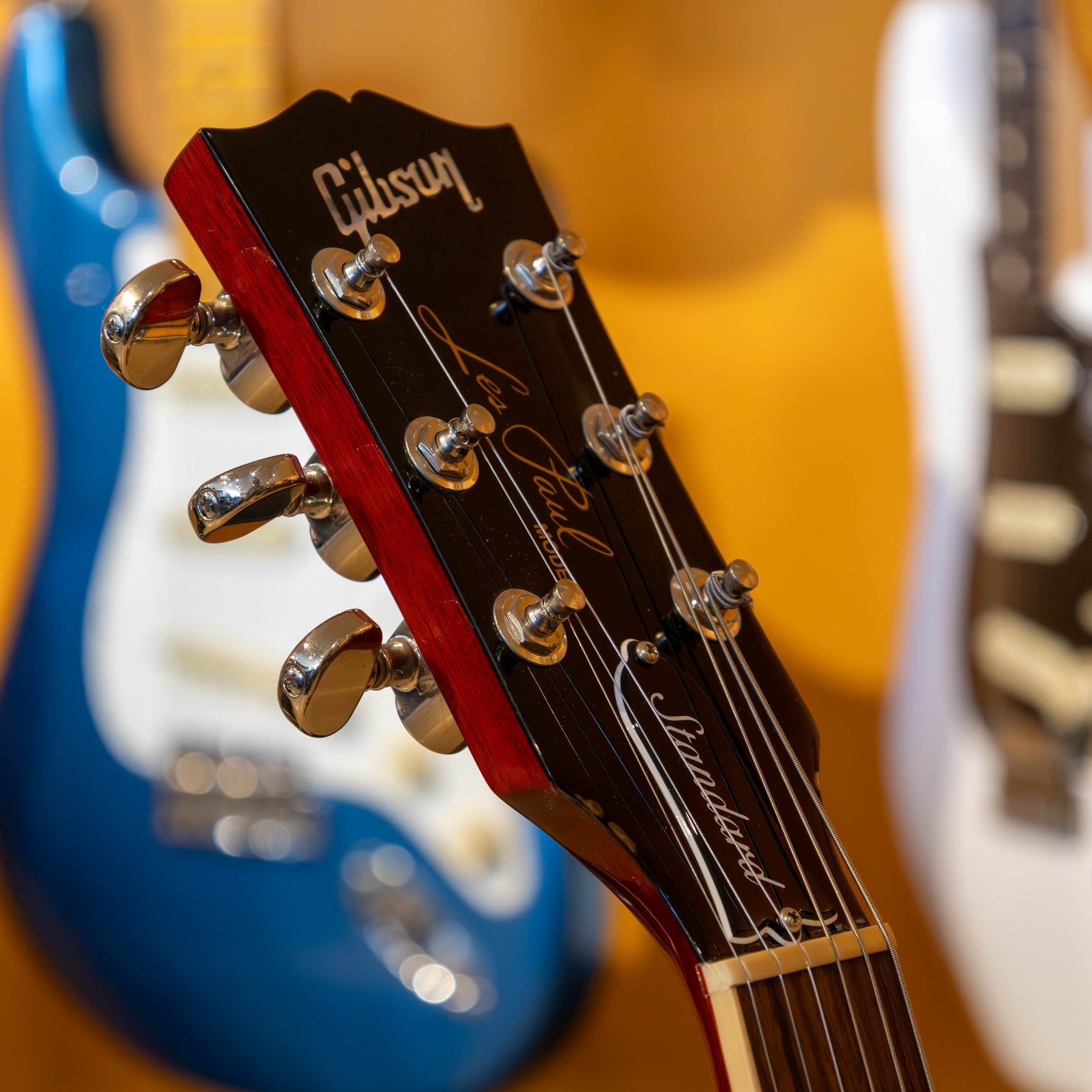 The new Les Paul Standard returns to the classic design that made it relevant, played and loved; shaping sound across generations and genres of music. It pays tribute to Gibson's Golden Era of innovation and brings authenticity back to life. The Les Paul Standard 60's has a solid mahogany body with an AA figured maple top, and a slim taper 60's-style mahogany neck with a rosewood fingerboard and trapezoid inlays. It's equipped with a classic-style Tune-O-Matic bridge, aluminum stop bar tailpiece, Grover Rotomatic "Kidney" tuners, and gold top hat knobs with silver reflectors. The Burstbucker 61R (neck) Burstbucker 61T (bridge) pickups are loaded with AlNiCo V magnets, audio taper potentiometers and orange drop capacitors.