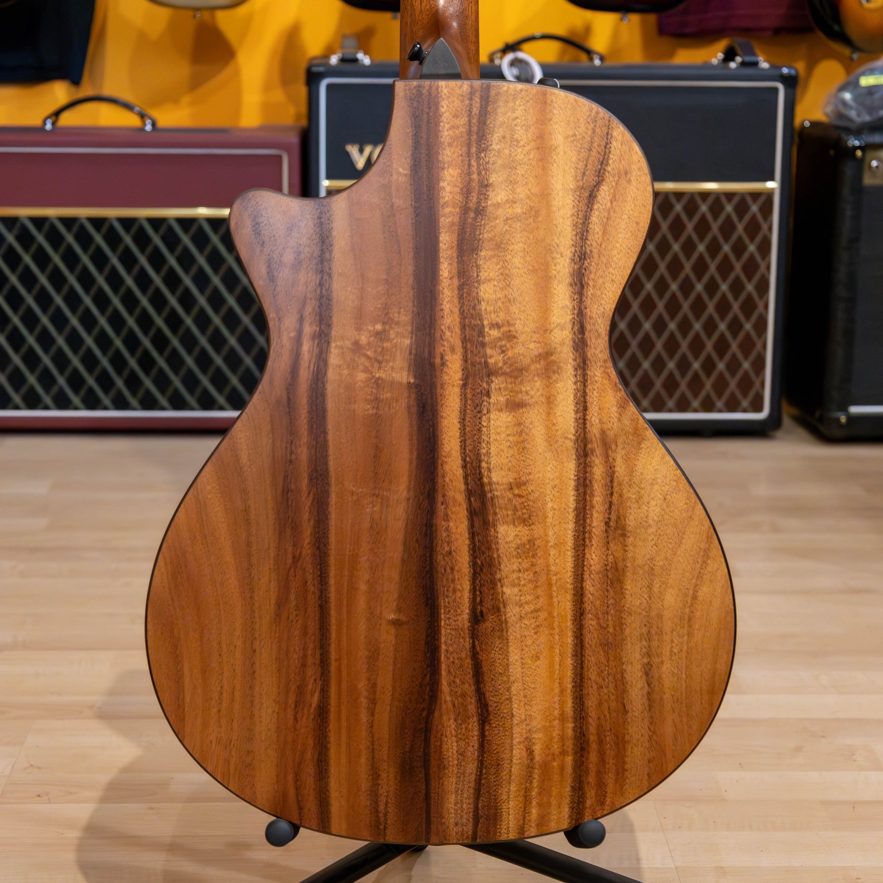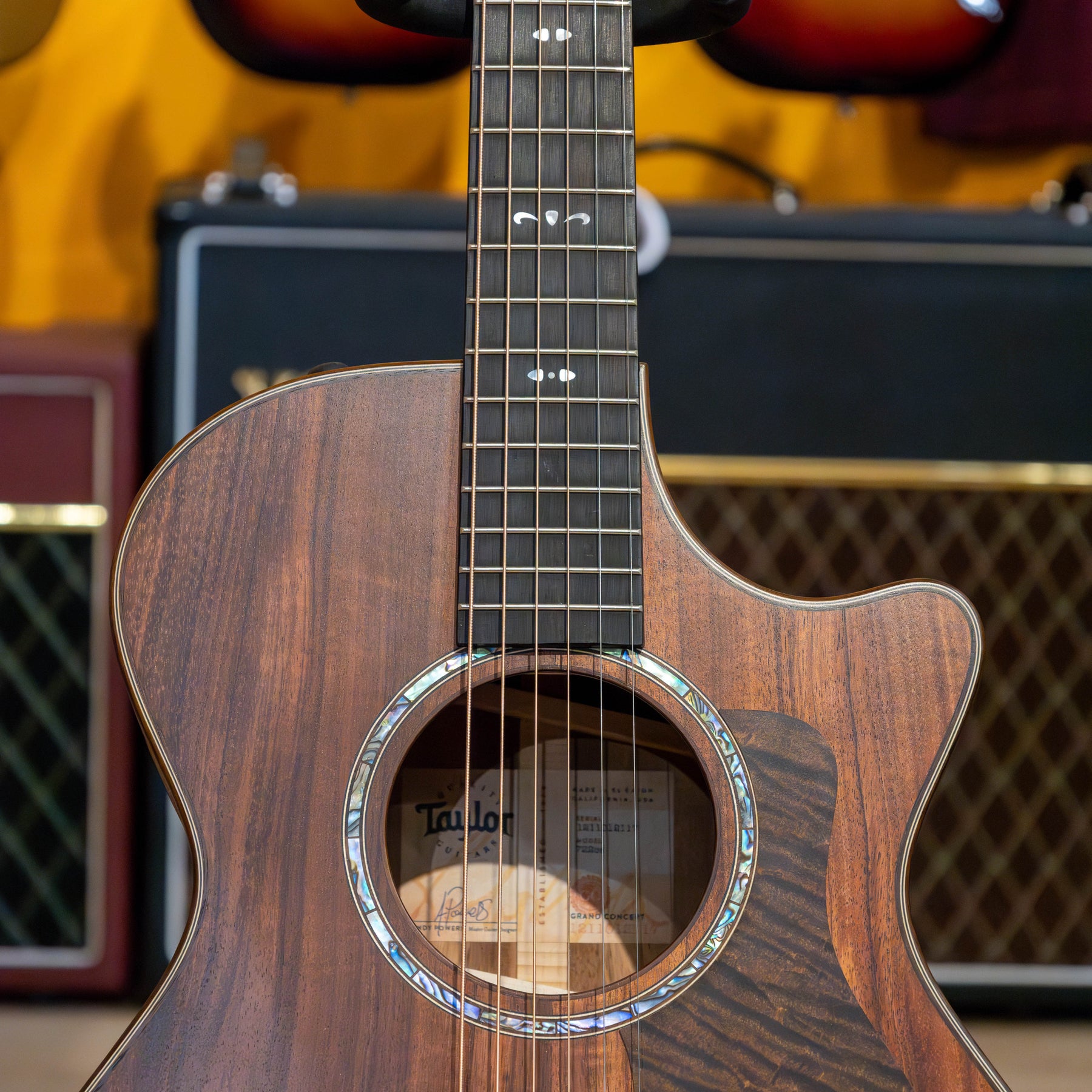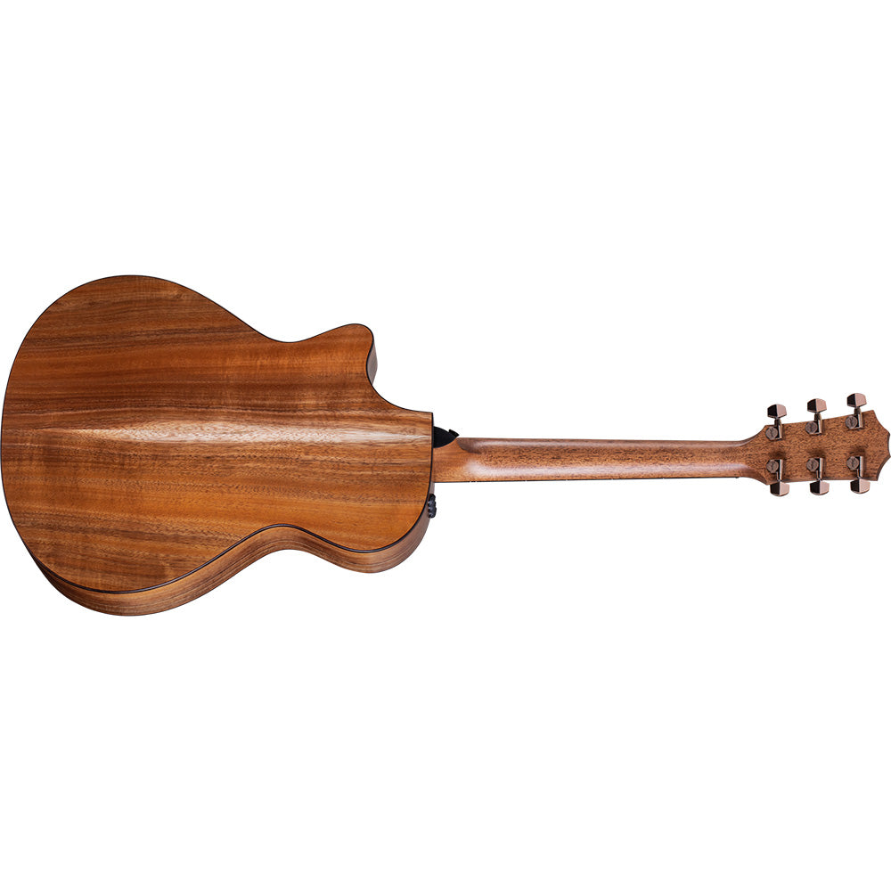 Players have always appreciated Hawaiian koa’s rich tonal character and beautiful aesthetics, and our new 722ce adds to that heritage with Select-grade koa back, sides and top. Together with V-Class bracing, the Grand Concert body shape and a thin matte finish that preserves optimal resonance, this model yields a bold, sprightly attack with a vibrant midrange response, pristine trebles and a warm low end that grows richer with time and play. This new model looks as striking as it sounds with koa’s natural color variegation highlighted by rosewood binding, a paua shell rosette, a dark-stained maple pickguard and new Fountain inlays in mother-of-pearl. The 722ce ships with the built-in ES2 pickup and a deluxe hardshell guitar case.