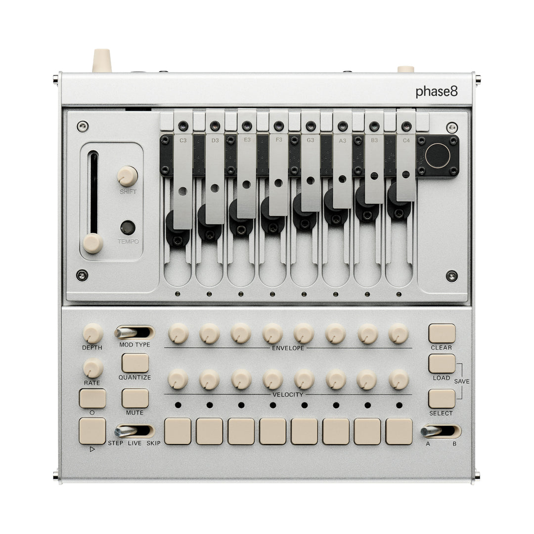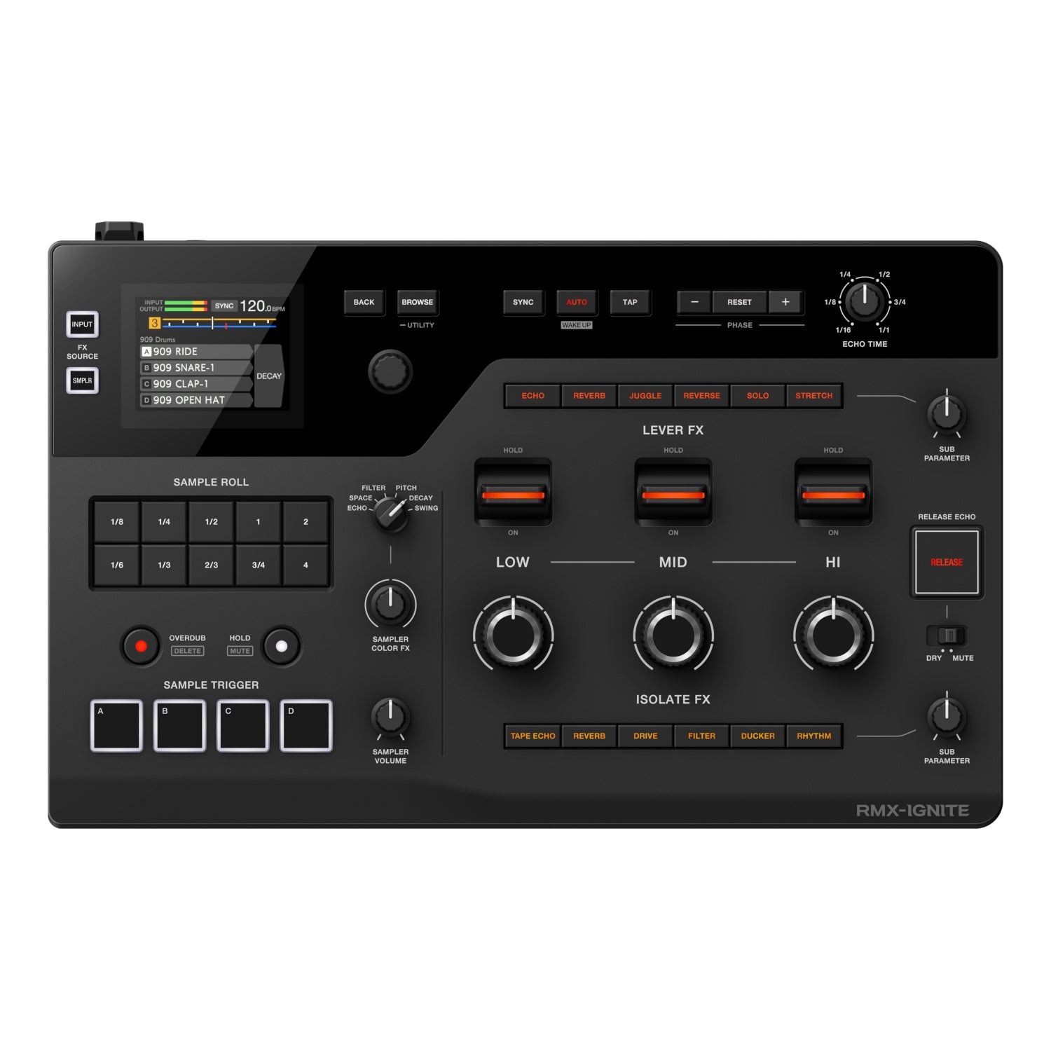 Add texture to your music with 6 expressive effects: Short Delay, Reverb, Shimmer, Tape Echo, PingPong, and Echo-Verb. Each channel features a dedicated send knob so you can intuitively adjust the amount of effect applied to individual tracks. The time knob, which controls each effect's time parameter and decay, includes a unique clicking mechanism that varies depending on the effect.