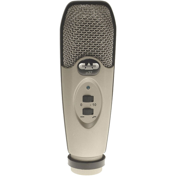 Record studio-quality audio directly to your computer via USB with the CAD U37 side-address condenser microphone-a great choice for both vocal and instruments as well as for creating podcasts and voiceovers for videos. Compatible with both Windows and Mac OS operating systems, you can simply plug the U37 into your PC and start recording. The U37 has two switches on the front. The first switch allows you to decrease the sensitivity of the microphone so the sound quality is clear for extremely loud sounds. For example, the switch should be in the "-10" position for loud voices, percussion and other high sound pressure level devices. The "0" position should be used for normal voices and string instruments. The second switch on the U37 is designed to reduce pickup of deep-bass sounds. The switch should be in the "Normal Bass" mode in most cases. However, if you want to remove wind noise, ventilation noise, or decrease the low frequencies in a recording, the switch should be in the "Bass Reduction" position.