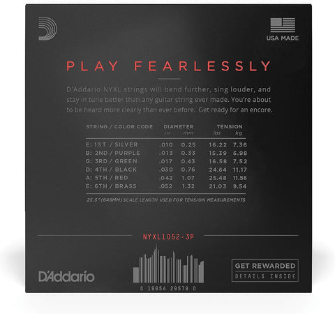 Overview of D'Addario NYXL1052-3P - NYXL Electric Guitar Strings, Light/Heavy 10-52 (3-Pack)