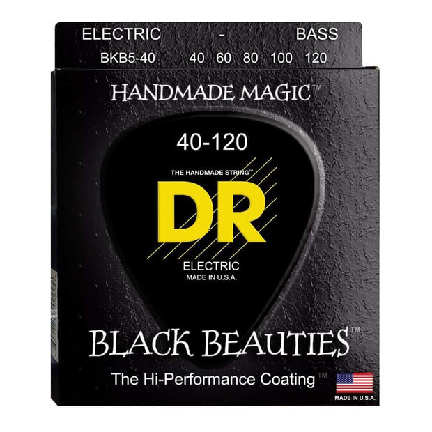 Overview of DR Strings BKB5-40 (Medium 5's) - BLACK BEAUTIES - BLACK Coated Bass: 40, 60, 80, 10, 120