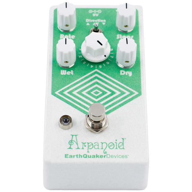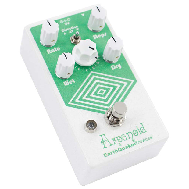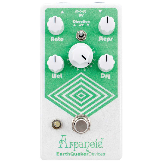 Hi buddies, welcome to the first dedicated compact polyphonic pitch arpeggiator effect pedal for electrical guitar! What does the Arpanoid do? The Arpanoid™ takes whatever you play and transforms it into an adjustable ascending or descending scale. It features 8 intuitive and expandable modes and will work on complex chords as well as single notes in any key. The Arpanoid has an all analog dry signal, all digital wet signal and true bypass switching. Like all EarthQuaker Devices pedals, this dude is handmade one at a time in sunny Akron Ohio.