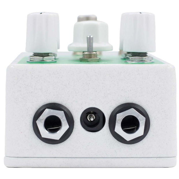 This device takes a standard 9 volt DC power supply with a 2.1mm negative center barrel. We always recommend pedal-specific, transformer-isolated wall-wart power supplies or multiple isolated-output supplies. Pedals will make extra noise if there is ripple or unclean power. Switching-type power supplies, daisy chains and non-pedal specific power supplies do not filter dirty power as well and let through unwanted noise. DO NOT RUN AT HIGHER VOLTAGES!