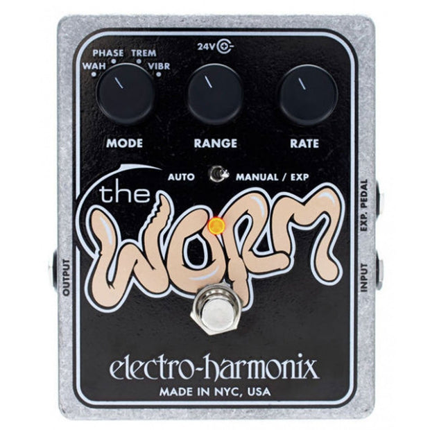 Modulation madness! All-analog multi-effects processor featuring Phaser, Tremolo, Vibrato, and a Neo-modulated Wah. At the heart of The Worm is a specially designed tone-bending engine that creates groundbreaking oscillatory effects.Music City Canada is an authorized reseller for Electro-Harmonix products. Purchases are backed with full manufacturer warranty in Canada. All orders ship from our Canadian warehouse.