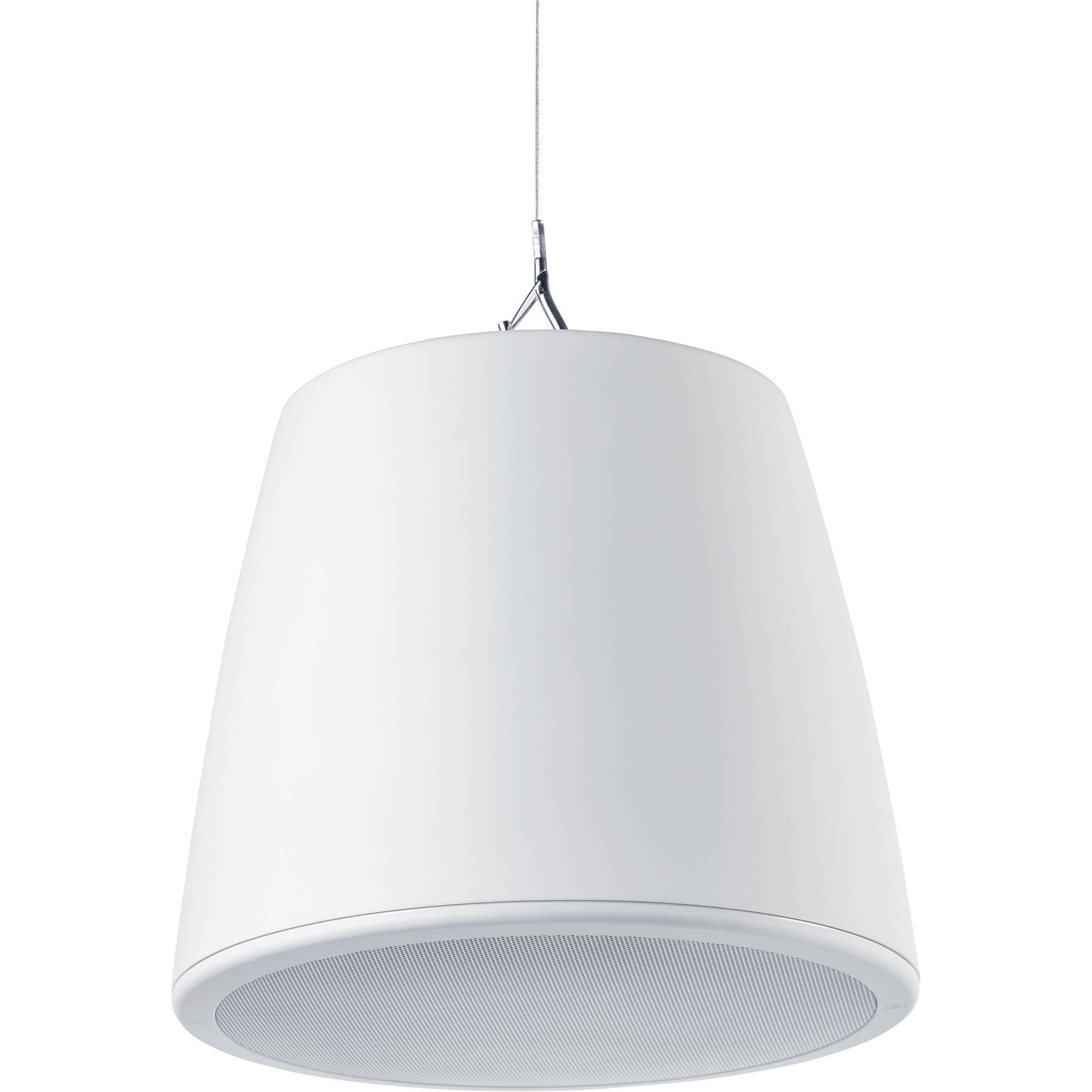 The white Electro-Voice EVID-P6.2 is a 6.5" coaxial pendant speaker that provides a convenient way to equip open ceiling spaces with sound where conventional surface or ceiling mount speakers cannot be used. The pendant speaker is effective as a background music and paging solution for offices, waiting rooms, retail, bars, and other similar spaces.