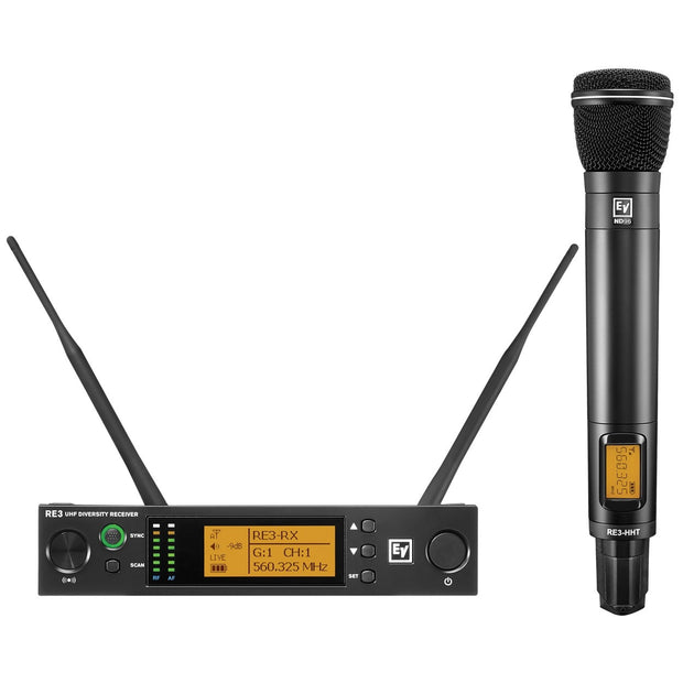 Handheld UHF wireless set featuring ND96 dynamic supercardioid microphone head for vocal performance and presentations. The ND96's sound is powerful, rich and detailed and delivers exceptionally high gain before feedback for excellent acoustic control on very loud stages. Setup is quick and simple using the RE3 clear frequency scan and sync functions and the radio link between the robust handheld transmitter and diversity receiver delivers rock-solid system performance.Music City Canada is an authorized reseller for Electro-Voice products. Purchases are backed with full manufacturer warranty in Canada. All orders ship from our Canadian warehouse.