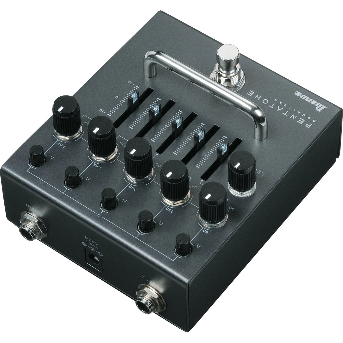 The Pentatone Equalizer is a standalone version of the 5-band equalizer section in the Ibanez Pentatone Preamp. Adding a continuously variable Q control on each band, which allows for a wider variety of sound creation, enables even more detailed sound creation. Furthermore, the ±9V power supply circuitry provides a wide headroom.