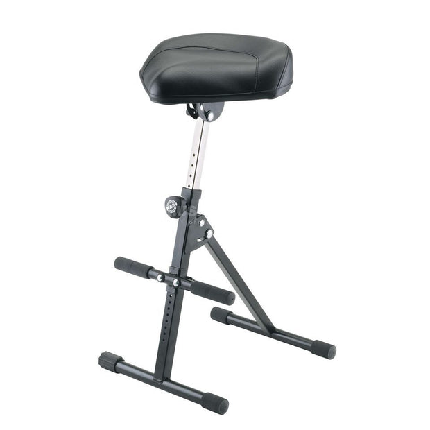 No matter whether you play guitar, keyboard or another instrument, this redesigned stool lends the right support for your back every time you play. The ergonomically shaped seat will perceptibly relieve pressure on your back and prevent premature tiredness. Moreover, the seat, which is covered with imitation leather, can be freely adjusted to any angle. The height  can be adjusted from 600 to 900 mm to suit every individual. The practical and beneficial foot rest can also be height adjusted. The robust construction of the legs and the integrated foot end caps ensure the stool is sturdy and safe. The stool can be folded flat for transport.