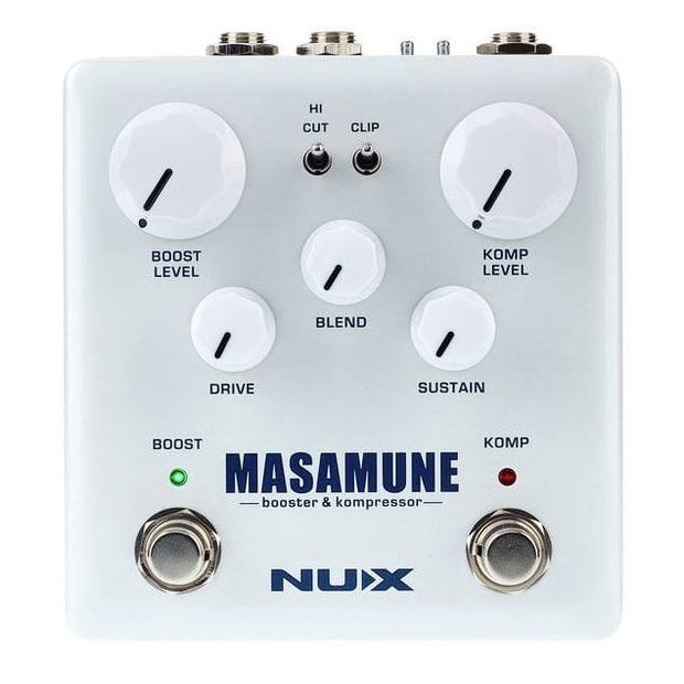 Booster and Compressor Pedals are the gigging guitarist’s secret weapon. Both pedals are now available in one convenient metal housing, and it comes with selectable signal routing. The Boost Section comes with Boost Level, Drive, and Hi-Cut controls. The Compressor Section comes with Komp Level, Sustain, Blend, and Clip controls. The Masamune has an external foot-switch jack Input, you can easily operate the pedal by using an additional remote switch.Music City Canada is an authorized reseller for Nux products. Purchases are backed with full manufacturer warranty in Canada. All orders ship from our Canadian warehouse.