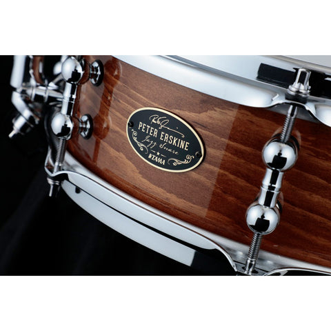 The drum set is a jazz instrument … but you can play any style of music on it. The “Jazz Bass” was, in fact, played on more hit tunes than you can count; the “Jazz Snare” may enjoy equal legendary status one day. Designed to be affordable without any compromise in its playability or sonic footprint, the Peter Erskine Jazz Snare by TAMA is a unique 14“x4.5” drum, made of Spruce and Maple plies with a reinforcing ring on the batter side only. The drum whispers and shouts, with brilliant focus and snap. The sensitivity provided by the shallow depth is balanced by the 8-lug design which allows for a low fundamental body of sound. The drum follows your every command, and will take you to new places, too. Every drummer should have a “Jazz Snare” as part of their collection; the beautiful wood/gloss finish assures compatibility with any drum set.
